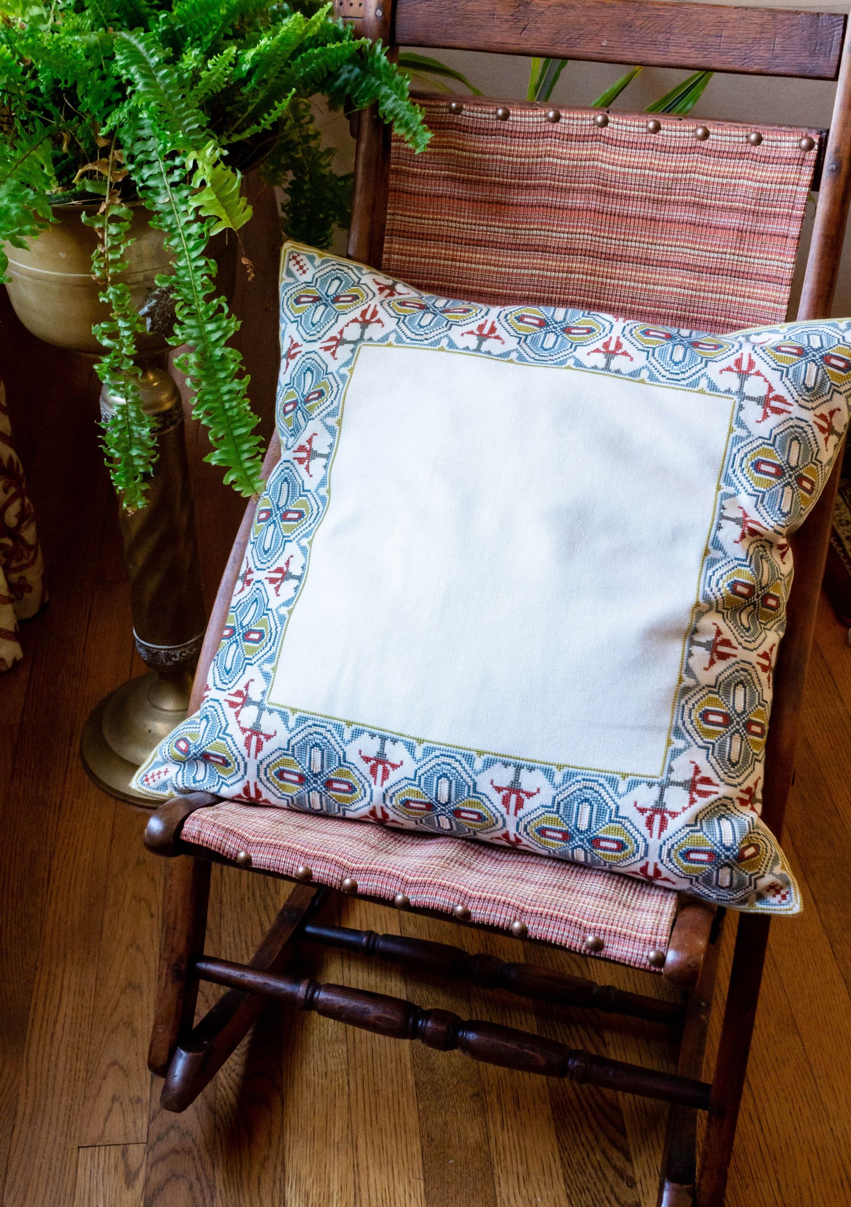 My high quality kits come with everything you need to make the embroidery in the photos–our 26ct Mikini ivory 100% cotton, DMC floss, full color SOC (symbol-on-chart) pattern, along with a John James size 24 tapestry needle. The raw edges of the fabric are serged for your convenience, so you can start stitching as soon as you open the kit!