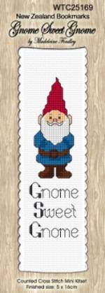 Gnome sweet gnome counted cross stitch 5cm x 16cm on 14ct adia band
